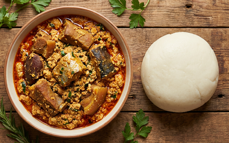 Rich and savory egusi soup with assorted meats.